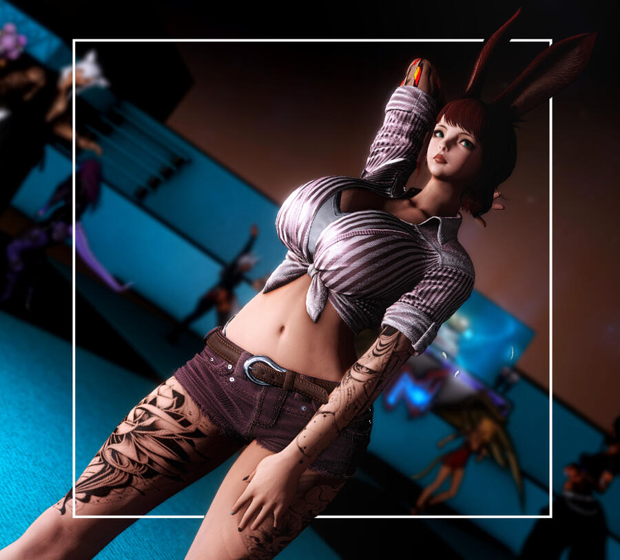 Synthetic combat unit dating from the Third Astral Era. Origin nation unidentified- suspect complete destruction by Allagan Empire. Umbral corruption: significant. Vosaar [VS-99R] spent centuries living alongside the Rava tribes in the Gulmore Jungle following his release from an Allagan facility. He is now as a mercenary for hire, part-time model, and general "problem solver".A stoic expression and a gentle politeness hide the danger lurking in the depths of genetic technology. Doubly so for his fellow 'brother' Ganluu who appears in the venue on occasion. When not speeding through the main cities on comms-duty, Vosaar can easily be spotted in the venue dancing to the music. Come say hello- or are you too scared to wake the beast?